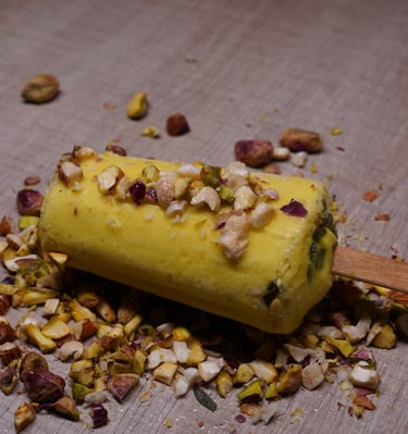 Royal rose-infused kulfi with a rich, aromatic touch.